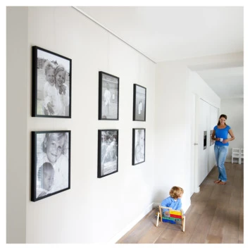 De Artiteq Click Rail is het meest eenvoudige en gebruiksvriendelijke schilderij ophangsysteem en zorgt ervoor dat je altijd flexibel bent in het ophangen van wanddecoratie zonder dat de wand beschadigd raakt. Bij montage dienen de clips op de muur bevestigd te worden en kan de rail op de clips worden geklikt. Dit zorgt voor een zeer nette afwerking. Vervolgens kunnen de transparante ophangdraden met haken via de zijkant in de rail op de gewenste plaats worden geschoven. Wanneer de juiste hoogte van de haken is bepaald kan de wanddecoratie aan de haken worden gehangen. Dit product wordt per complete set geleverd en bevat een Click Rail 200 cm, twee ophangkoorden met een lengte van 150 cm, haken die een draagkracht hebben van 4 kg en al het bevestigingsmateriaal. De rail is aluminium geborsteld. Naast het Artiteq Click Rail schilderij ophangsysteem compleet 2 meter aluminium, is de Click Rail ook in meerdere lengtes en (overschilderbare) kleuren beschikbaar bij GAMMA.
