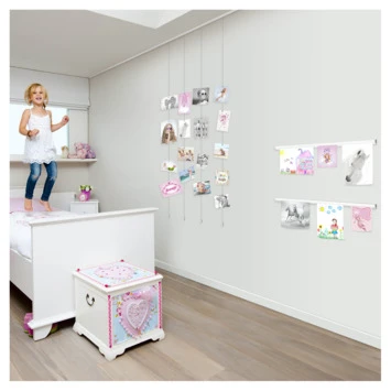 De Artiteq Info Rail ophangsysteem 100 cm aluminium kan gebruikt worden om tekeningen, kaarten en foto’s en ander papier aan op te hangen. Monteer de bevestigingsclips op de muur en klik de rail erop. Vervolgens kunnen persoonlijke papieren en herinneringen in de rail gehangen met behulp van de rubberen klemming. Bovendien kan de inhoud altijd flexibel worden gewisseld. De Info Rail is vervaardigd uit geborsteld aluminium en heeft een lengte van 100 cm. Naast de Artiteq Info Rail aluminium, is de Info Rail ook in wit beschikbaar bij GAMMA.