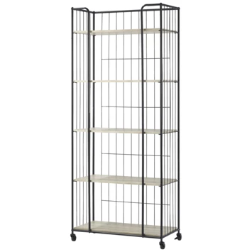 Je spullen staan mooi uitgestald in het decoratief wandrek breed 190x80x37cm. Dit decoratieve wandrek zorgt ervoor dat decoratie, zoals bijvoorbeeld planten, bloemen en fotolijstjes, mooi uitgestald kunnen worden. Door de zwenkwieltjes is het decoratieve wandrek gemakkelijk te verplaatsen. De afmetingen van het wandrek is 190x80x37cm en heeft een zwart gecoat metalen frame met MDF-planken. Iedere plank heeft een draagkracht van 20 kilogram per plank bij een gelijkmatige verdeling, je kunt er dus lekker veel spullen opzetten. Kortom: dit wandrek is een aanwinst voor iedere woning.