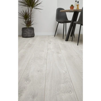 Het Bruynzeel Extra Breed Waterbestendig Laminaat lief lichtgrijs 4V-Groef 8 mm 2,02 m² heeft een voelbare houtstructuur en een landelijke uitstraling. De vloer heeft een klikverbinding, waardoor het leggen van het laminaat eenvoudig is en deze een naadloos effect heeft. Daarnaast kan je de vloer zwevend leggen, waardoor deze niet aan de ondervloer hoeft te worden gelijmd. Laminaat is zeer onderhoudsvriendelijk omdat het eenvoudig te reinigen is. Dit kliklaminaat is geschikt voor intensief woongebruik en intensief commercieel gebruik.
