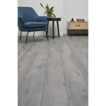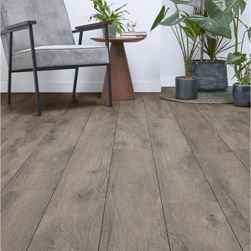 Het Bruynzeel Waterbestendig Laminaat gedurfd grijs 2V-Groef 8 mm 2,13 m² heeft een voelbare houtstructuur en een landelijke uitstraling. De vloer heeft een klikverbinding, waardoor het leggen van het laminaat eenvoudig is en deze een naadloos effect heeft. Daarnaast kan je de vloer zwevend leggen, waardoor deze niet aan de ondervloer hoeft te worden gelijmd. Laminaat is zeer onderhoudsvriendelijk omdat het eenvoudig te reinigen is. Dit kliklaminaat is geschikt voor intensief woongebruik en normaal commercieel gebruik.