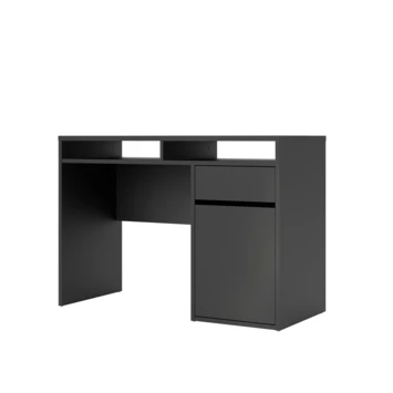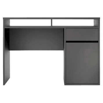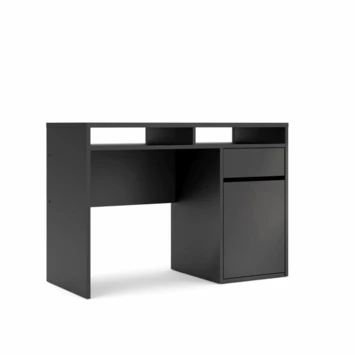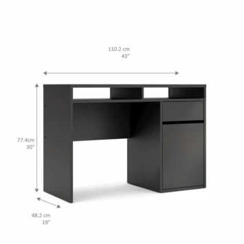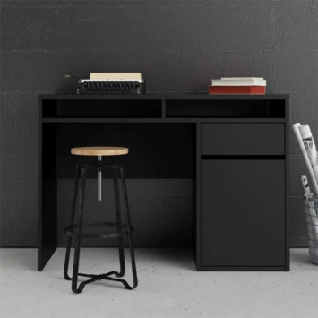 De bureau Eline is gemaakt van hout en het heeft een zwart/donkerbruine kleur. Het bureau is in twee kleuren verkrijgbaar, wit en zwart. Het bureau Eline is een modern en stoere bureau die zowel in een tienerkamer als in een volwassen kantoor past, maar ook in de woonkamer of studeerkamer. Het bureau Eline heeft een groot blad en een lade voor opbergruimte, het is ideaal om aan te studeren of te werken. Het tafelblad is groot genoeg voor bijvoorbeeld: een lamp, computer, schrijfgerief, notitieboekje. De hoogte van de bureau Eline is 78,4cm, de diepte is 48,2cm en de breedte is 1,102cm.
