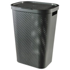 De Curver Infinity Dots wasmand 60L in de kleur antraciet is gemaakt van volledig gerecycled materiaal. Dankzij de open structuur kan het wasgoed voldoende luchten. De Infinity Dots wasmand is voorzien van comfortabele handvaten en is gemakkelijk schoon te maken. De Dots wasmand 60L is ook verkrijgbaar in de kleur wit en groen.