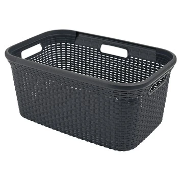 De Curver Style Vintage wasmand wit 45L antraciet heeft dankzij zijn vlechtdesign een moderne uitstraling. Hiermee onderscheid de mand zich ten opzichte van andere kunststof manden. Door het open vlechtwerk is de verluchting van het wasgoed optimaal. De Curver Vintage wasmand is voorzien van 3 greepsuitsparingen waardoor de wasmand kan ook op de heup gedragen kan worden. De Style Vintage wasmand is ook verkrijgbaar in wit