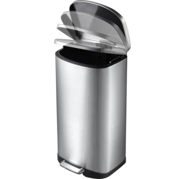 De EKO Della Pedaalemmer 50L is een fraai vormgegeven pedaalemmer van geborsteld RVS met fingerprint proof coating. Voorzien van geruisloos sluitend deksel, kunststof binnenemmer en handgreep aan de achterzijde. De stay-open functie vergrendelt het deksel, voor het makkelijk schoonmaken van de afvalbak of wisselen van de afvalzak.