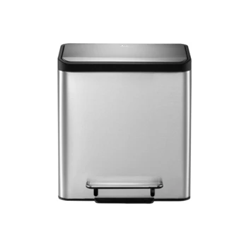 De EKO EcoCasa Pedaalemmer 15+15L is een rechthoekige pedaalemmer van geborsteld RVS met fingerprint proof coating en handige kunststof handgrepen. Voorzien van gedempt sluitend deksel en twee kunststof binnenemmers (15 + 15 liter) voor het scheiden van afval. De stay-open functie vergrendelt het deksel, voor het makkelijk schoonmaken van de afvalbak of wisselen van de afvalzak.