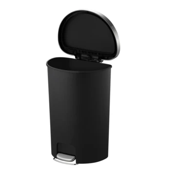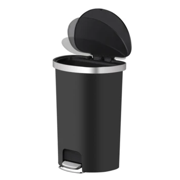 De EKO Hana Semi-Round pedaalemmer 55L met ingebouwde wielen is een functionele halfronde pedaalemmer van kunststof met opvallende RVS rand en gedempt sluitend deksel. De afvalbak bevat geen binnenemmer waardoor extra ruime capaciteit. De brede, overlappende rand houdt de afvalzak op zijn plaats en uit het zicht. De rand zorgt er tevens voor dat de afvalbak volledig open gezet kan worden voor het makkelijk schoonmaken van de afvalbak of wisselen van de afvalzak. Voorzien van ingebouwde wielen aan de achterzijde waardoor de pedaalemmer eenvoudig te verplaatsen is.