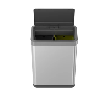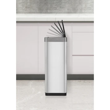 De EKO Mirage X Sensor Afvalbak 20+20L is een sensor afvalbak van mat RVS voorzien van fingerprint proof coating en twee kunststof binnenemmer5 (20 + 20 liter). Het sensormechanisme voorzien van dynamisch display zorgt voor een simpele bediening en het automatisch en geruisloos openen en sluiten van het kunststof deksel. Door het afneembare deksel is de afvalzak eenvoudig te wisselen. Werkt op 6x AA batterijen (niet inbegrepen).