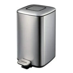De EKO Regent Pedaalemmer 12L is een vierkante pedaalemmer van geborsteld RVS met fingerprint proof coating. Voorzien van kunststof binnenemmer, handgreep aan de achterzijde en geruisloos sluitend deksel met opvallend design.
