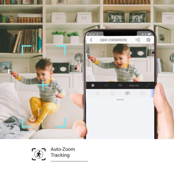 De C6W-camera slaat beelden op in 2K-resolutie en levert scherpe details met een digitale 4-voudige zoom. 360° zichtdeken. Dankzij de horizontale afdekking van het gezichtsveld en de verticale rotatie ontstaat een 360 graden afdekking en 4-voudige digitale zoom, om de video te vergroten en details duidelijker te zien.