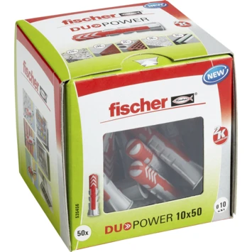De Duopowerplug 10x50mm is geschikt voor zowel voor- als doorsteekmontage. Meer materiaal in de plug voor nog meer spreiding en nóg hogere belastbaarheid. De combinatie van een harde en zachte kunststof garandeert een optimaal gebruiksgemak, zeer gemakkelijke plaatsing en bovendien een duidelijke feedback wanneer de plug correct geplaatst is. Geschikt voor hout- , spaanplaat- én stokschroeven. Schroeflengte = pluglengte + dikte aanbouwdeel + 1x schroefdiameter. In het geval van plaatmateriaal dient het gladde deel van de schroef niet langer te zijn dan de dikte van het aanbouwdeel. De combinatie van 2 materialen en 3 werkingsprincipes maakt de DUOPOWER de juiste plug voor alle omstandigheden. De plug activeert het optimale werkingsprincipe – spreiden, vouwen, knopen – afhankelijk van de ondergrond. Best mogelijke terugkoppeling van de plug, het is duidelijk voelbaar wanneer de schroef goed is aangedraaid. De korte en compacte plug staat voor minimale boortijd en bespaart daarmee materiaal én tijd. De dunne kraag voorkomt dat de plug in het boorgat verdwijnt bij gebruik in holle wanden, terwijl doorsteekmontage nog steeds mogelijk blijft. De vertande anti-rotatievleugels voorkomen dat de plug tijdens montage in het boorgat meedraait. Verpakking is 50 stuks.