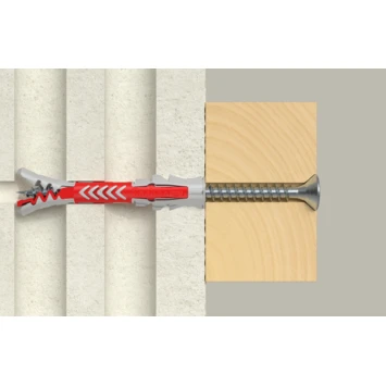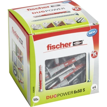De Duopowerplug 6×50 mm met schroef is geschikt voor zowel voor- als doorsteekmontage. Meer materiaal in de plug voor nog meer spreiding en nóg hogere belastbaarheid. De combinatie van een harde en zachte kunststof garandeert een optimaal gebruiksgemak, zeer gemakkelijke plaatsing en bovendien een duidelijke feedback wanneer de plug correct geplaatst is. Geschikt voor hout- , spaanplaat- én stokschroeven. Schroeflengte = pluglengte + dikte aanbouwdeel + 1x schroefdiameter. In het geval van plaatmateriaal dient het gladde deel van de schroef niet langer te zijn dan de dikte van het aanbouwdeel. De combinatie van 2 materialen en 3 werkingsprincipes maakt de DUOPOWER de juiste plug voor alle omstandigheden. De plug activeert het optimale werkingsprincipe – spreiden, vouwen, knopen – afhankelijk van de ondergrond. Best mogelijke terugkoppeling van de plug, het is duidelijk voelbaar wanneer de schroef goed is aangedraaid. De korte en compacte plug staat voor minimale boortijd en bespaart daarmee materiaal én tijd. De dunne kraag voorkomt dat de plug in het boorgat verdwijnt bij gebruik in holle wanden, terwijl doorsteekmontage nog steeds mogelijk blijft. De vertande anti-rotatievleugels voorkomen dat de plug tijdens montage in het boorgat meedraait. Verpakking is 50 stuks.