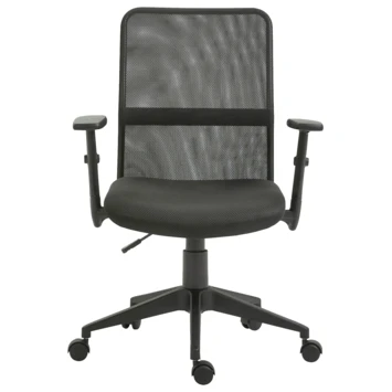 Bureaustoel Gerrit is een zwartkleurige bureaustoel gemaakt van textiel. Deze bureaustoel is ideaal voor in je kantoor of studeerkamer, de bureaustoel is zeer comfortabel, heeft 2 handleuningen en 5 poten voor de stabiliteit. De handleuningen zijn ideaal om je handen op te plaatsen en even te rusten na al het werk dat gedaan is. Met de 5 poten en 5 wielen die er geplaatst zijn draait de bureaustoel draaien wat makkelijk is om iets te nemen dat op kleine afstand is. De zit hoogte van de bureaustoel Gerrit is 46 cm, de zit diepte is 42,5 cm, de zit breedte is 45 cm, de hoogte van de armleuning is 64,5cm en de breedte van de armleuning is 8cm