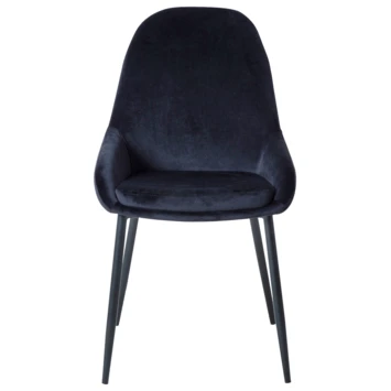 Eetkamerstoel Julien fluweel is een zwartkleurige eetkamerstoel gemaakt van fluweel textiel. De eetkamerstoel heeft 4 zwartkleurige metalen poten waar die op steunt. De eetkamerstoel is zacht en comfortabel, de eetkamerstoel is ideaal voor in de eetkamer zowel qua comfortabiliteit als voor schoonheid. De eetkamerstoel Julien fluweel is 88 cm hoog, 64 cm diep en 48,5 cm breed. De zithoogte is 48cm, de zitdiepte is 44 cm en de zitbreedte is 48 cm.