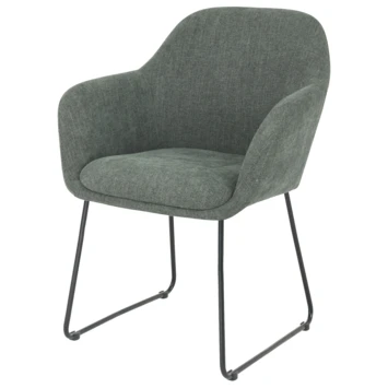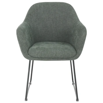 Ontdek de stijlvolle Eetkamerstoel Lotte: een prachtig gestoffeerde stoel met een warm groene bekleding en elegante zwarte metalen poten. De combinatie van de zachte kleur en het moderne design maakt Lotte een perfecte aanvulling op elke eetkamer.