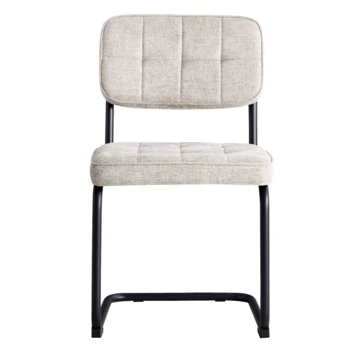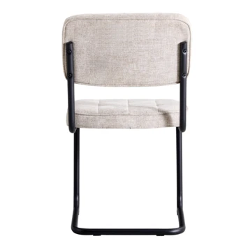 Maak kennis met de elegante en stijlvolle Tom stoel. Met de grijze gestoffeerde bekleding en zwarte metalen poten creëert de Tom stoel een moderne en tijdloze sfeer. Deze veelzijdige stoel past perfect bij diverse interieurstijlen, van modern tot klassiek. Of je nu een moment voor jezelf neemt in de woonkamer of gasten verwelkomt aan de eettafel, deze stoel biedt een comfortabele zitervaring.