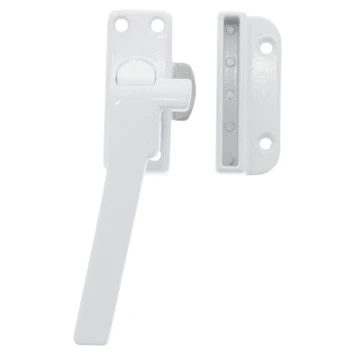 Met de GAMMA raamsluiting kun je gemakkelijk een naar buiten draaiend raam afsluiten. Deze raamsluiting is geschikt voor naar links draaiende ramen en door de drukknop is de raamboom extra stevig vergrendeld. Tevens beschikt deze raamsluiting over een nok zodat het raam veilig op de ventilatiestand gezet kan worden. Deze raamsluiting is gemaakt van een stevige metaallegering (zamak) waardoor deze extra stevig is. De raamboom wordt geleverd inclusief de bijbehorende sluitplaat. De kleur van de raamsluiting is wit.