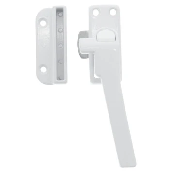 Met de GAMMA raamsluiting kun je gemakkelijk een naar buiten draaiend raam afsluiten. Deze raamsluiting is geschikt voor naar rechts draaiende ramen en door de drukknop is de raamboom extra stevig vergrendeld. Tevens beschikt deze raamsluiting over een nok zodat het raam veilig op de ventilatiestand gezet kan worden. Deze raamsluiting is gemaakt van een stevige metaallegering (zamak) waardoor deze extra stevig is. De raamboom wordt geleverd inclusief de bijbehorende sluitplaat. De kleur van de raamsluiting is wit.
