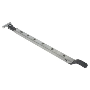 Met de GAMMA raamuitzetter grijs 30 cm buitendraaiend zet je draairamen die naar buiten openen makkelijk vast. Zo klappert of valt je raam niet dicht door de wind. Je kunt het raam op 5 verschillende standen openen. Met de ventilatiestand heb je toch nog frisse lucht binnen als het te koud is om het raam vol open te zetten. De maximale stand is een opening van 30 cm. Het uitzetijzer zet je op de pin vast, zo maak je het ijzer windzeker. Het metaal is afgewerkt met donkerkleurige details. De raamuitzetter is ook in andere kleuren verkrijgbaar. Ook het bevestigingsmateriaal kun je kopen bij GAMMA.