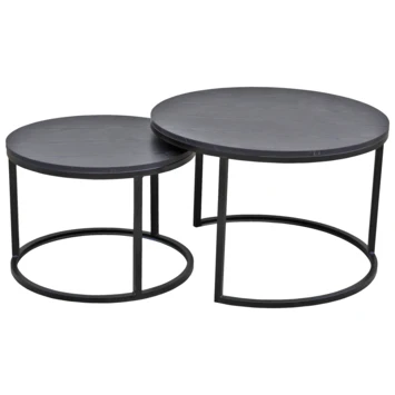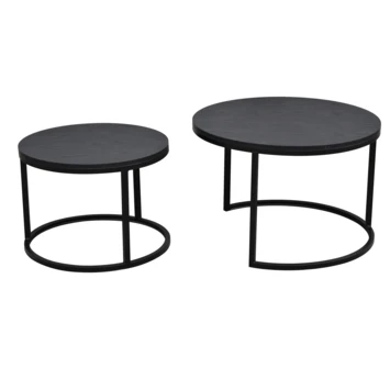 De salontafel Kimberly bestaat uit 2 stuks. De tafels hebben 2 verschillende formaten en hoogtes waardoor ze samen een speels uiterlijk hebben. De tafels zijn vervaardigd uit zwart metaal, met een MDF tafelblad.