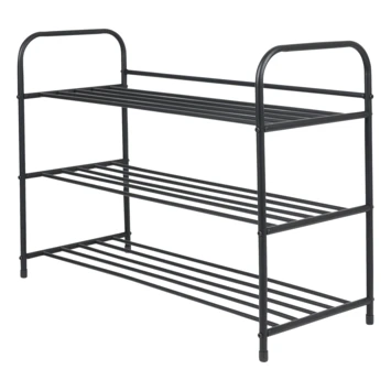 Het Henkjan schoenenrek is een simpel maar functioneel meubel bestaande uit drie lagen waar je al je schoenen netjes op kan zetten. Het schoenenrek heeft een neutrale zwarte kleur.