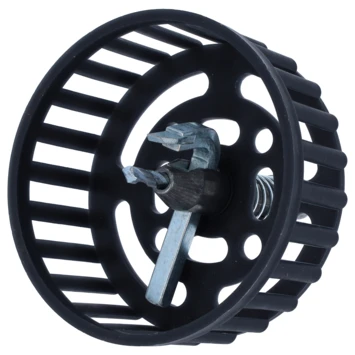 De Gamma tegelgatsnijder voor probleemloos boren van gaten in tegels met een diameter van 23 tot 94 millimeter, bijvoorbeeld voor het installeren van wandcontactdozen of leidingen. Gebruik een laag toerental, maximaal 400 toeren per minuut en laat de tegelsnijder het werk doen. Het kunststof statief zorgt ervoor dat de boor en het snijmes loodrecht op de tegel komt, dat voorkomt het happen in de tegels. De tegelgatsnijder is met de stelschroef eenvoudig te verstellen. De centerboor en het snijmesje zijn gemaakt van hardmetaal. De tegelgatsnijder is niet geschikt voor het boren van hard gebakken tegels. Hiervoor kun je beter een watergekoelde diamantboor gebruiken