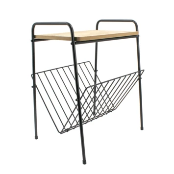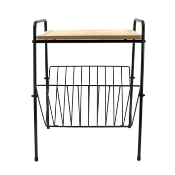 Dit kleine tijdschriften rekje is de ideale plek om je kranten en tijdschriften in te leggen. Het frame is gemaakt van metaal met een houten blad.