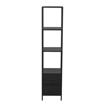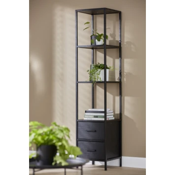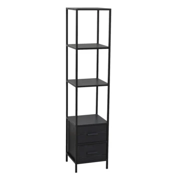 Wandrek Richard is een handige kast met 3 planken en 2 lades om spullen op te kunnen bergen. Wandrek Richard is gemaakt van MDF en metaal en is in de kleur zwart eikenhout.
