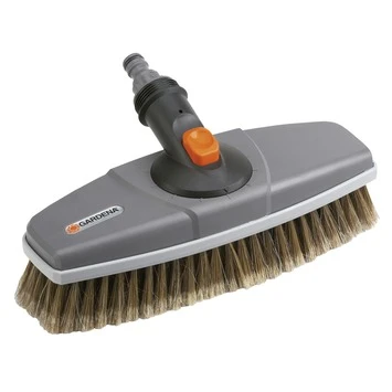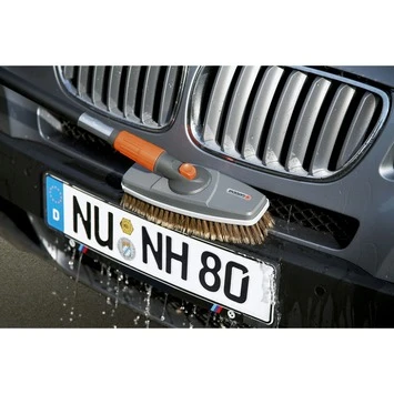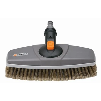 De Gardena wasborstel 5570 zwart met waterdoorvoer via original Gardena systeemaansluiting heeft een paardenharen borstel waar u kwetsbare oppervlakten voorzichtig maar effectief mee kunt reinigen. Om het u makkelijker te maken, is de borstel in stappen van 30 graden draaibaar en vast te zetten. Met deze wasborstel maakt u in 27cm of 13cm brede banen brandschoon.