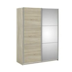 De garderobekast JANNEKE met de afmetingen (hxbxd) 202x182x64 is uitgevoerd in een licht eiken kleur en heeft een grote spiegel op de deur. Zo kan je de kast goed combineren met andere meubelen. De kast bestaat uit schuifdeuren en wordt standaard geleverd met 2 roedes voor een hanggedeelte en 2 legplanken. De kast heeft veel leg en hangruimte zodat je veel kwijt kunt. Zelf kan je nog 3 lades aanschaffen die je in de kast kan plaatsen. Het interieur van de kast kan je zelf uitbreiden met legplanken en een ladenblok om de kast geheel naar eigen wens in te delen. Door deze uitbreiding creëer je meer opberggemak. Om de kast altijd zachtjes dicht te kunnen doen is er ook een softclose beschikbaar.
