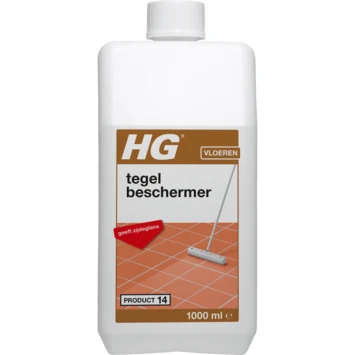 HG tegel beschermfilm met zijdeglans (HG product 14) is een gemakkelijk aan te brengen, vloeibare polymeer emulsie voor alle soorten vloertegels, plavuizen en leisteen. Na droging vormt deze emulsie een licht glanzende en flinterdunne, maar uiterst sterke beschermfilm, waardoor het de tegel bescherming biedt tegen vlekken, vervuiling, krassen en slijtage en daarbij tevens de kleur en structuur verdiept. Deze beschermfilm geeft daarnaast ook een antiÂslip effect. Breng de vloeistof gelijkmatig en in één richting aan met behulp van een wasverdeler. Vervolgens laten drogen, waarna eventueel een tweede laag haaks op de eerste laag kan worden aangebracht. 1 liter is geschikt voor ongeveer 40 m2 per laag.