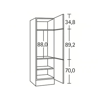 Met de hoge koelkastkast Klassik 60 wit 60 cm breedte bezit u een kwaliteitsproduct geproduceerd in Duitsland. Het artikel is gekenmerkt door extra goede stabiliteit en simpele zelfmontage. De grepen zijn inbegrepen.