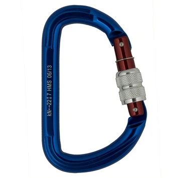 De klimkarabijn met schroefborging 120x75mm is gemaakt van extra sterk aluminium. De karabijn is 120 bij 75 millimeter groot en heeft een breeklast van 2000 kilogram, de karabijn is dus een zeer sterke lichtgewicht karabijnhaak, geschikt is voor outdoor sporten. De enigszins ovale, asymmetrische vorm zorgt er voor dat de karabijnhaak makkelijk rechtop op zijn plaats blijft hangen.