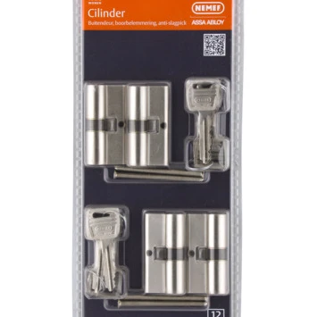 Wil jij de bestverkochte veiligheidscilinder van Nederland hebben? Ga dan voor de Nemef veiligheidscilinder SKG** 111/9 messing mat vernikkeld 4 stuks. Deze cilinders zijn voorzien van het keurmerk van SKG** (Stichting Kwaliteit Gevelbouw) en voldoen hiermee aan de eisen van het Politiekeurmerk Veilig Wonen. Bovendien hebben deze cilinders de zogenoemde ‘aftastbeveiliging’, wat inhoudt dat ze niet kunnen worden gemanipuleerd. Forceren van de cilinders wordt helemaal moeilijk doordat deze zijn voorzien van meerdere gehard stalen stiften. Ook zijn de cilinders beschermd tegen de bekende inbraakmethode ‘slagsleutelmethode’. Wil je voor al je sloten dezelfde sleutel? Dat kan, want bij GAMMA is dit veiligheidscilinder ook gelijksluitend verkrijgbaar. Dit artikel wordt geleverd per 4 stuks, zodat je meerdere deuren kunt beveiligen met een slot. Kortom: volgens Nederlanders de beste veiligheidscilinder om je deur mee te beveiligen.