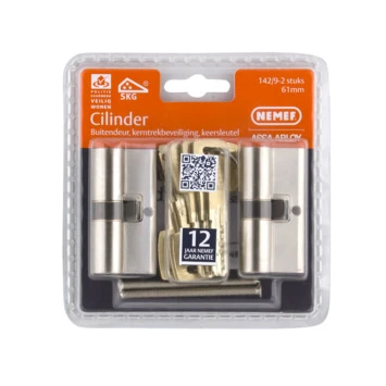 Zoek je hoogwaardige veiligheidscilinders waardoor inbrekers minder kans krijgen om bij je in te breken? Ga dan voor de Nemef veiligheidscilinder *** ( security) 2 stuks. Deze cilinders zijn voorzien van het keurmerk van SKG*** (Stichting Kwaliteit Gevelbouw) en voldoen hiermee aan alle eisen van het Politiekeurmerk Veilig Wonen. Ten eerste zijn de cilinders voorzien van kerntrekbeveiliging die de actuele inbraakmethode ‘kerntrekken’ tegenhoudt. Daarnaast zijn ze voorzien van een gevarenfunctie, waardoor je jouw deur ook kunt openen wanneer aan de andere kant een sleutel is geplaatst. Wil je voor al je sloten dezelfde sleutel? Dan heb je geluk, want voor beide sloten gebruik je dezelfde sleutel. Kortom: een sterk en stevig slot dat de kans op inbraak zo goed mogelijk tegenhoudt.