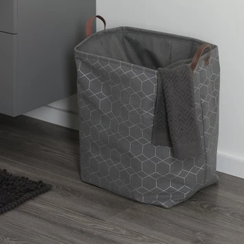 De Sealskin Wasmand Geometric Grijs is gemaakt uit textiel en is een echte eyecatcher voor de badkamer. Door de geometrische print is dit een leuke wasmand voor de trendy badkamer. Deze wasmand heeft een diameter van 40 cm en een inhoud van 60 liter. De linnenmand heeft twee lederlook handgrepen zodat deze eenvoudig verplaatst kan worden.