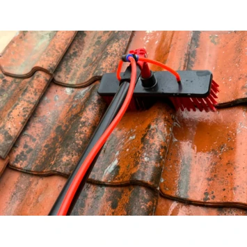 Dankzij de OGS-aansluiting kun je de borstel gemakkelijk op een tuinslang aansluiten. Het water stroomt dan via de meegeleverde slang, door de steel direct naar de borstel. Bovendien komt deze handige borstel geleverd met een zeepdispenser, zodat je niet voortdurend het oppervlak hoeft in te zepen. En om het werk nog makkelijker te maken kun je de borstel op 3 verschillende standen zetten met de vertelbare hoekadapter.