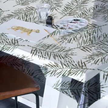 Wil je, je (houten) tafel beschermen, maar tevens ook decoreren? Dan biedt dit Transparant Tafelzeil Fern voor jou de oplossing. Dit tafellaken is transparant met een hippe print waardoor je nog steeds kan genieten van je tafel. Dit tafelzeil past in elk interieur en heeft een afmeting van 220 cm lang en 140 cm breed. Hierdoor is het geschikt voor tafels kleiner dan 220cm lang. Het transparante tafelzeil beschermt je tafel tegen beschadigingen en vlekken en is eenvoudig schoon te maken met een vochtige doek. Je kunt het zowel binnen als buiten gebruiken en tevens ideaal voor gebruik tijdens kinderfeestjes of knutselprojecten.