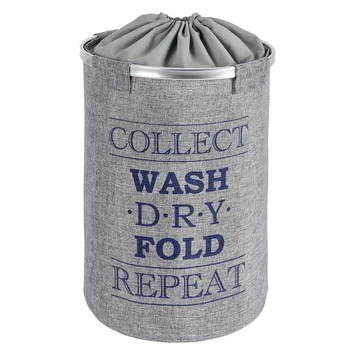 Deze trendy wasmand is gemaakt van slijtvast materiaal en heeft een aluminium frame voor extra stabiliteit. De Wenko Wasmand Ringo Grijs 68 Liter heeft een inhoud van 68 liter en heeft een grijze kleur. Aan de buitenkant van de wasmand staat de tekst ‘COLLECT wash dry fold REPEAT’ op de stof geprint.