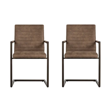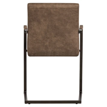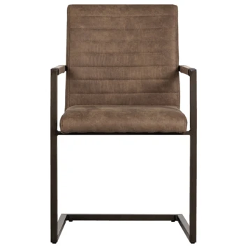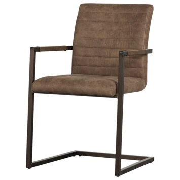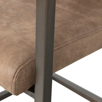Bas is een moderne eetkamerstoel de zitting is bekleed met een vintage PU leren stof. De zitting heeft een ingestikte ribbel structuur. Het frame van de stoel is van metaal en afgewerkt met een taupe poedercoating.