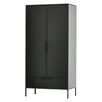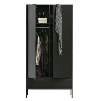 WOOOD Garderobekast Adam 2 Deurs Zwart 200x100x53 Cm